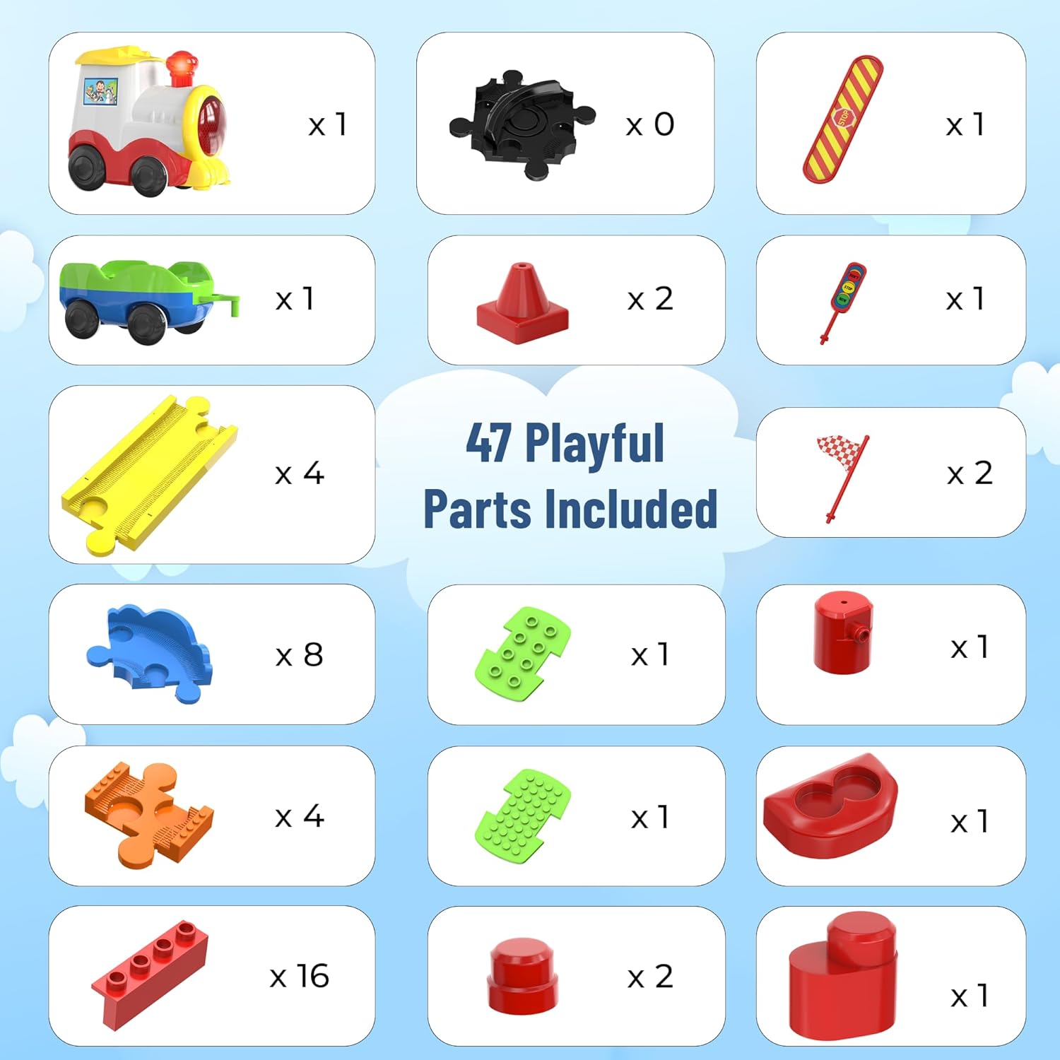 - bp 2- Compatible with Universal Blocks: The Mirana Block Rider Train Set is compatible with all major block brands, allowing children to expand their tracks and build custom layouts using their favorite blocks;Light and Engine Sounds for Enhanced Play: This train set comes to life with lights and engine sounds that create a realistic atmosphere, making every ride more exciting and engaging for kids.