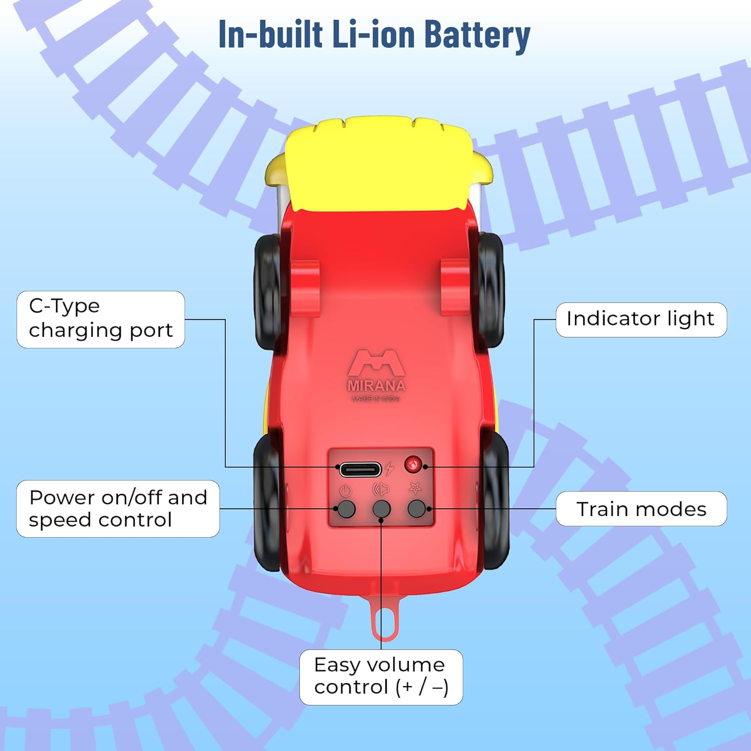 - bp 3- USB Rechargeable Type-C for Convenience: No more worrying about batteries! The train is USB RECHARGEABLE using a Type-C cable, ensuring quick charging and long-lasting playtime without interruptions.
