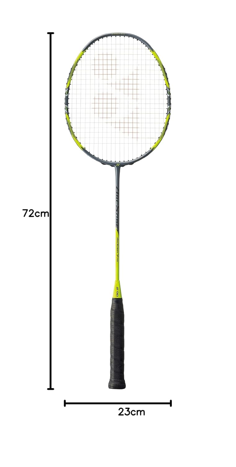 Frame stability of the Arcsaber series racket is an important characteristic which is achieved by a specific frame designed concept in which top and bottom of the frame is built with a stiffer frame section while the side of the frame is built with a flexible section. Stiff top and bottom helps in reducing the distortion in the frame while a flexible side section helps in better flexibility.